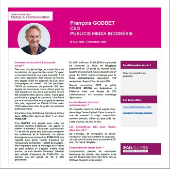 [PORTRAIT DE DIPLÔMÉ] - François GODDET (IFAG Paris 1987) Le CEO de PUBLICIS MEDIA Indonésie nous délivre les clés du succès pour manager à l'international