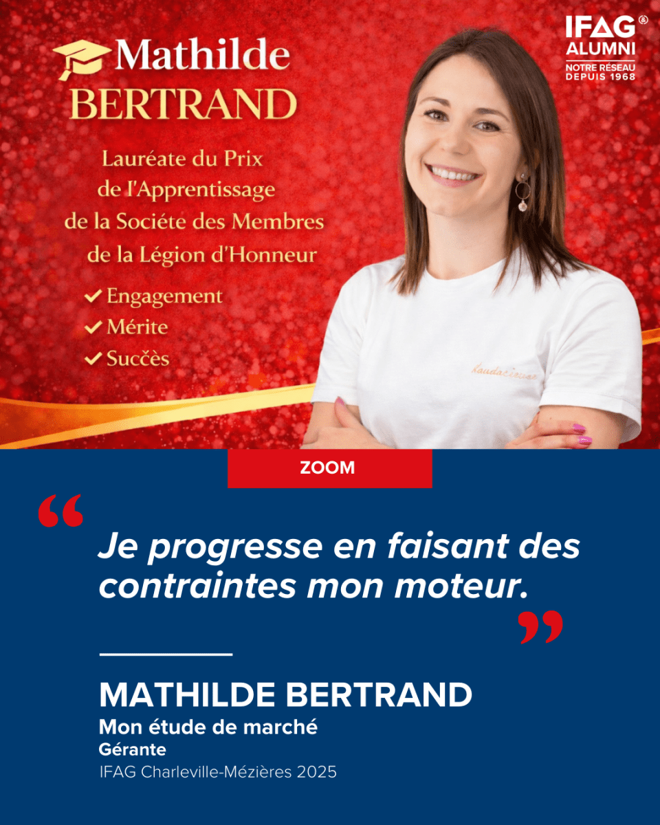 [ZOOM]💡 Et si la résilience était l’un des vrais marqueurs du leadership ? Reprendre ses études à 23 ans, déjà mère d’un enfant, suivre un parcours en alternance du BTS au Master, créer son autoentreprise en parallèle, combler des lacunes académiques, grâce à son implication scolaire et des cours du soir, tout en menant une seconde grossesse durant son Bachelor : c’est dans ce contexte intense que Mathilde Bertrand (IFAG Charleville-Mézières 2025) a construit progressivement son leadership distingué par le Prix de l’#apprentissage décerné par la Société des Membres de la Légion d'Honneur (SMLH). 🔧 Observer, proposer et améliorer l’existant Dans le cadre de sa formation, enceinte de son deuxième enfant, elle conçoit un questionnaire de satisfaction via un QR code, imprimé sur des cartes à destination des commerciaux. Utilisé lors d’échanges dédiés avec les clients, l’outil est adopté immédiatement et reste en usage aujourd’hui. Un #leadership de terrain, construit en osant proposer. 🧠 Créer de la valeur dans des environnements complexes Son rôle : structurer la communication et mobiliser des industriels autour de programmes de 4 ans, en créant le lien entre expertise scientifique et enjeux business. Pour y parvenir, elle crée un livret explicatif à destination des différents profils et sollicite l’aide des professeurs de l’IFAG. Ce livret est valorisé par Interreg, qui en propose ensuite le format à d’autres projets. 🚀 Ancrer durablement ses compétences dans l’action Elle obtient le statut d’étudiante-entrepreneure via l’incubateur Rimbaud'Tech qui l’accompagne dans la structuration de son activité et développe une approche locale fondée sur un diagnostic territorial. La jeune diplômée de 28 ans s’est illustrée lors de la cérémonie de l’innovation de Rimbaud’Tech en remportant le concours ID’ALL, dédié cette année à "L’audace ardennaise en action". Elle a séduit le public grâce à une vidéo authentique et engagée. 👉 Quelles épreuves t’ont le plus appris en matière de leadership ? Dis-le-nous en commentaire 👇 |