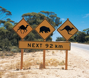 | Nous avons emprunté « la seule route » pour nous rendre dans le Western Australia en traversant la plaine du Nullarbor et c’est 3 000kms pour aller jusqu’à Perth. Pour vous rendre compte, cela représente un Paris-Moscou. En plus, on emprunte une ligne droite de 146kms. Déroutant ! Pendant la traversée, des paysages à perte de vue s’offraient à nous, remplis d’animaux sauvages (kangourous, dingos, chameaux, aigles). Un régal pour les yeux ! Chose vraiment bien faite en Australie, les rest Area (air de repos) sont multiples sur la route pour y passer la nuit en campement sauvage. Après une longue journée de route, s’installer en plein milieu de la nature, préparer et allumer un feu de camp sous les étoiles. Ces choses là n’ont pas de prix. De plus, les personnes sont souvent très amicales, et les conversations vite engagées autour du feu. |