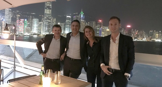 Pourquoi partir à Hong Kong représente un défi de taille ? Alban CHATAGNON, ambassadeur IFAG Alumni HK, nous a confié - lors de son dernier passage à Paris - travailler à un rythme très intense mais avec beaucoup de plaisir car tout est permis. Ainsi, l’économie ultra libérale de ce 3e centre financier au monde attire une population extrêmement cosmopolites (britanniques, américains, canadiens, japonais…) dont 20000 résidents français sur les 7 millions d’habitants. Des expériences que nos 4 diplômés installés à 1000km de la France ont décidé de partager autour d’un verre la semaine dernière. Souhaitons que lors de leur prochain afterwork, les entrepreneurs Hongkongais Julien FROGER (IFAG Lyon 2005), Founder de L’IMPERATRICE (Vins et Spiritueux) et Bertrand TERNAT (IFAG Lyon 2005) Co-Founder et CEO de CONCH SOCIETY (Luxe) pourront se joindre à eux. De Gauche à Droite sur la photo |